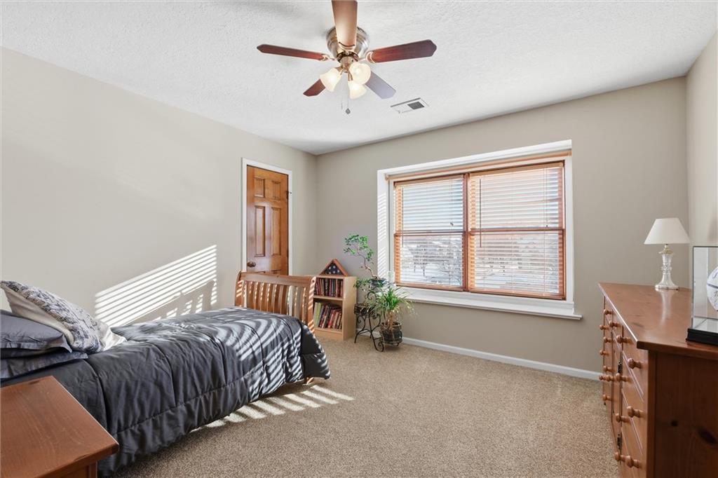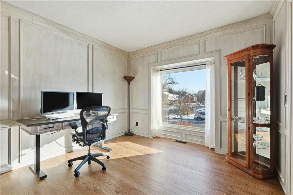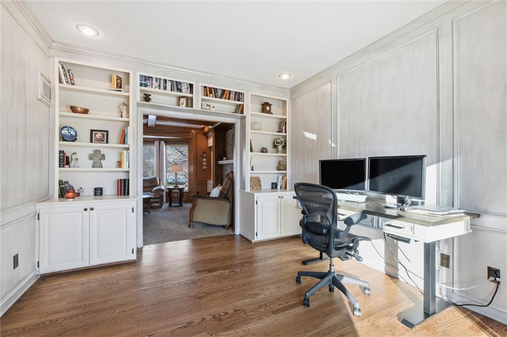 Discover this beautifully updated 2-story home situated on a treed corner cul-de-sac lot, offering exceptional space and functionality. The main level welcomes you with hardwood floors, fresh paint, and generous living spaces. The family room offers a cozy fireplace and built-in bookshelves. There are also a dedicated first-floor office and formal dining room. The updated kitchen boasts granite countertops, a pantry, and hardwoods, opening to a bright sunroom. Upstairs, the spacious primary suite impresses with vaulted ceilings, two walk-in closets, a private sitting room and its own balcony. The luxurious, updated primary bath features tile and granite finishes, a free-standing tub, and a separate shower. Three additional bedrooms share an updated hall bath with stylish tile and granite. Offering both a 2-car front-entry garage and an additional 2-car tandem side-entry garage with basement access, this extra space is perfect for hobbyists, storage, or extra vehicles. The partially finished basement includes stained concrete floors and is currently used as a workout room. Outside, enjoy a fenced yard ideal for pets, play, or gardening. Major updates bring peace of mind, including a new roof (1 month old), new windows, fresh exterior paint, new gutters and newer HVAC system. This well-maintained home on a private cul-de-sac corner lot offers space, updates, and a flexible floor plan--move-in ready and waiting for its next owner!