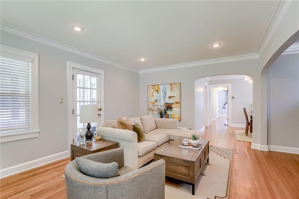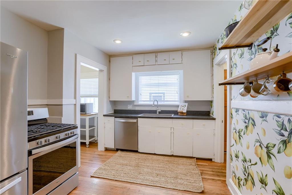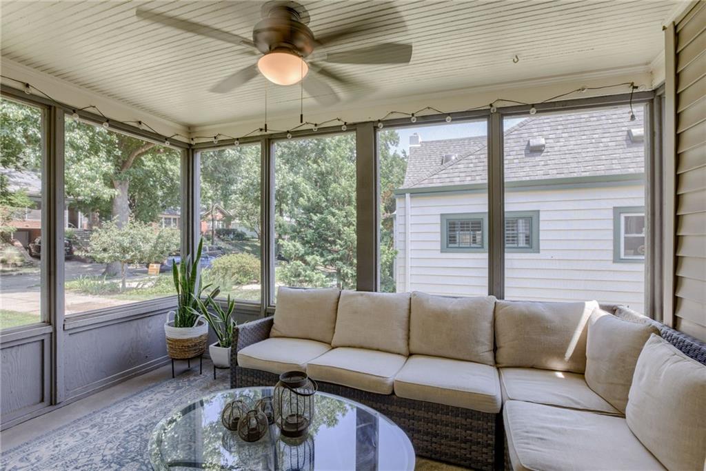 Lovely updated 2-bedroom, 1-bath ranch in the sought-after Armour Hills subdivision! Just moments from the popular Brookside shopping area, this charming home welcomes you with a light-filled living room featuring a cozy fireplace and access to a delightful enclosed side porch. The dining room and updated kitchen shine with style, including stainless steel appliances. Two comfortable bedrooms and a full hall bath complete the main level, while gleaming hardwood floors flow throughout. A private driveway leads to a basement-entry garage, offering convenience and extra storage. Move-in ready and full of character -- don't miss this Brookside gem!