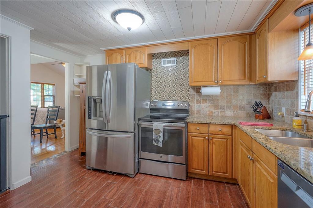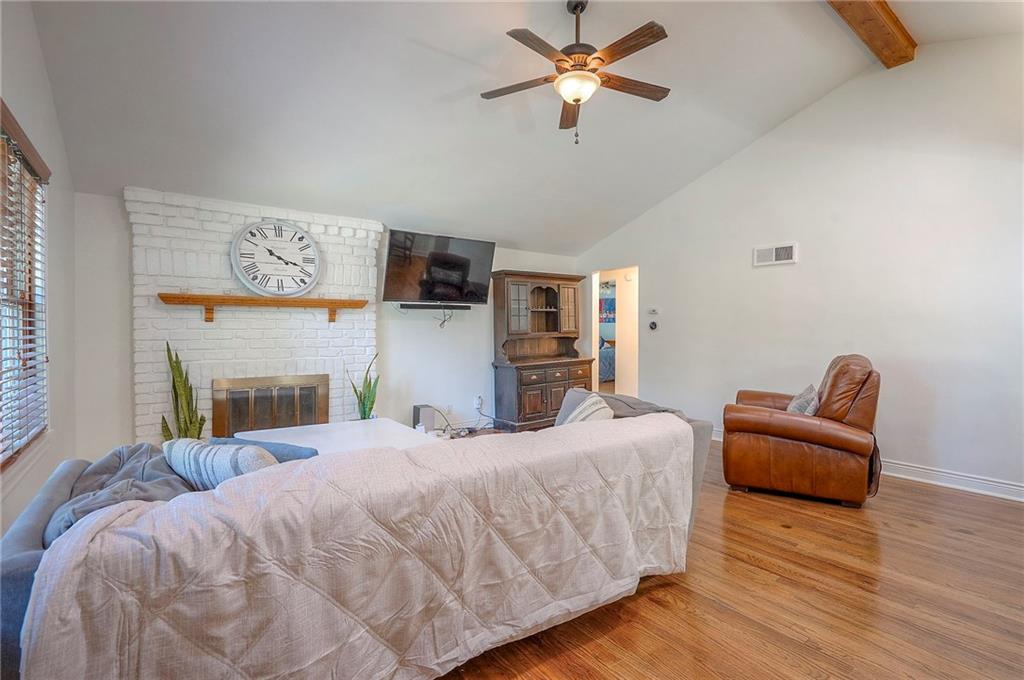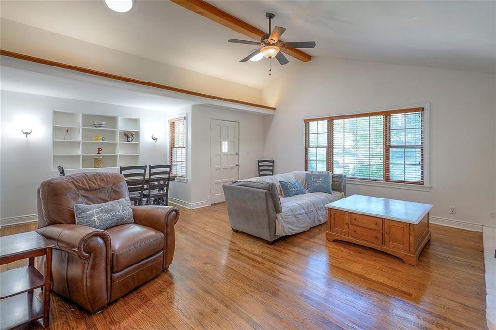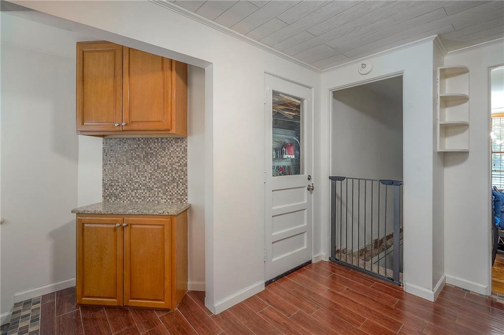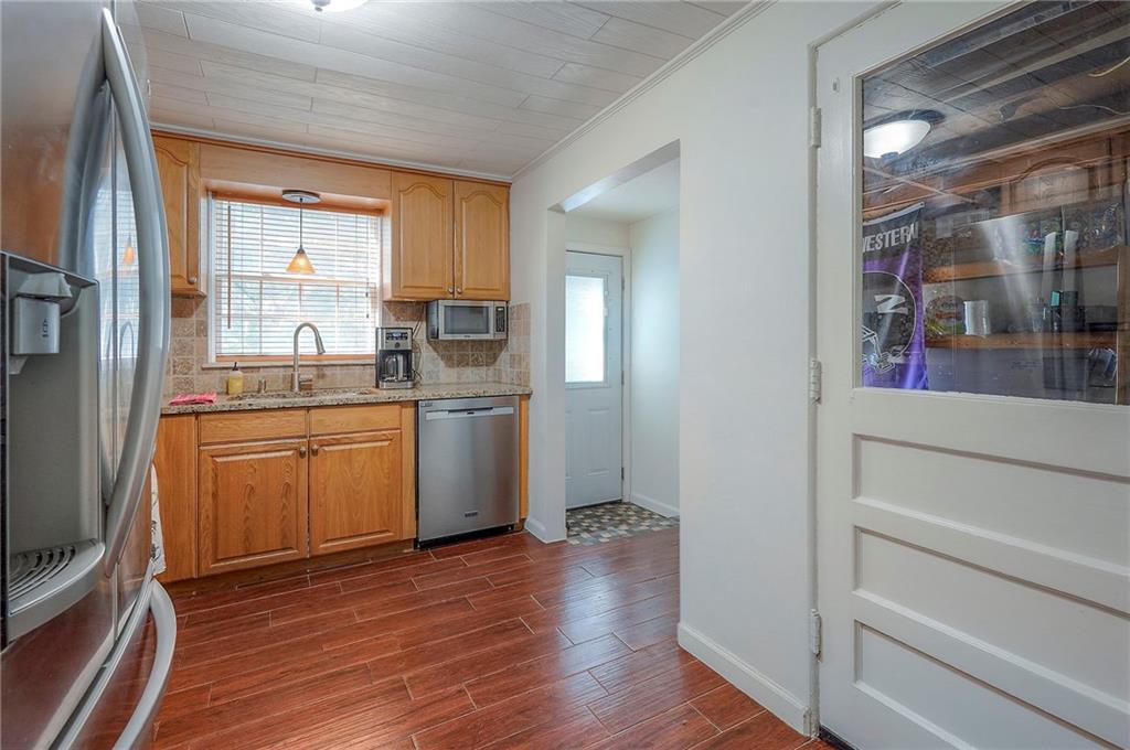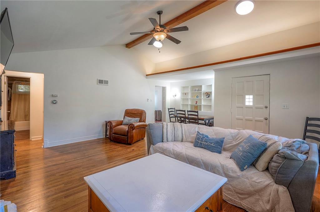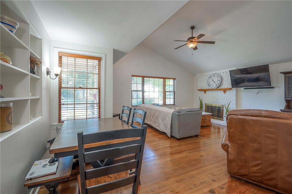 Charming ranch-style home in Prairie Village, located less than a mile from Shawnee Mission East. The living room features a brick fireplace, vaulted ceilings with sun tubes for natural light, and hardwood floors throughout the main level. The dining room includes built-ins, and the kitchen has been updated with newer granite countertops, tile backsplash, sink, disposal, and a newer dishwasher. Additional cabinetry creates a perfect bar or coffee station.