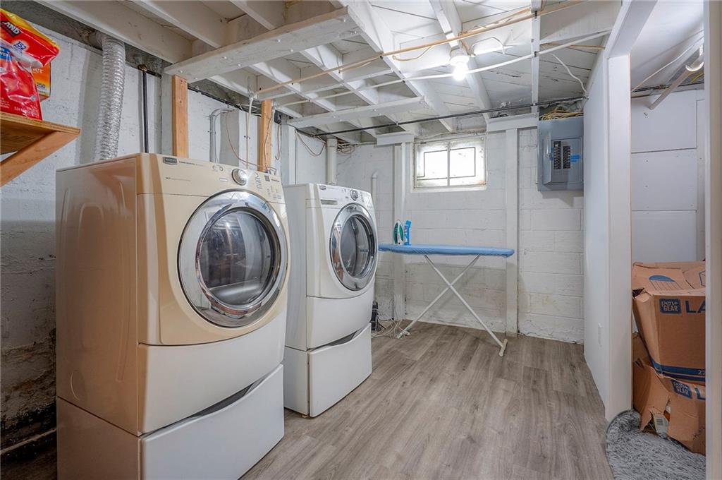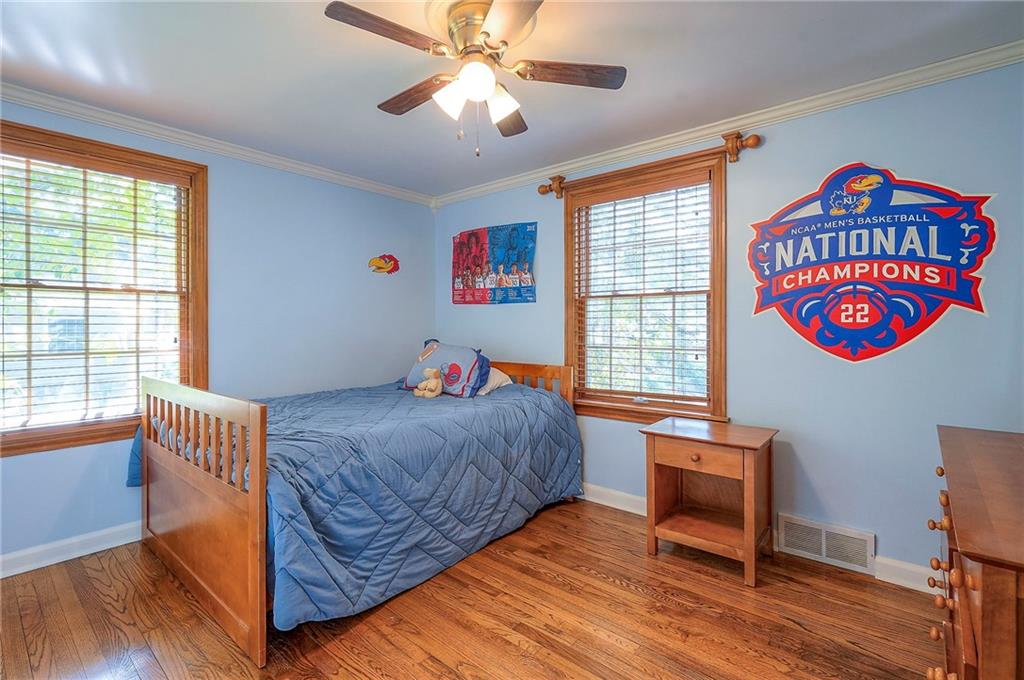 The finished basement includes a full bathroom and space ideal for a non-conforming bedroom or office. Outside, enjoy a beautifully landscaped, fenced backyard with mature trees, a patio, and a full front-and-back irrigation system controlled by app. The home also includes gutter guards, sump pumps, a French drain, a garage wall organization system, and a one-car garage. Thoughtfully maintained with updates including newer AC and LED lighting, this home offers comfort, efficiency, and convenience in one of Prairie Village's most desirable locations.