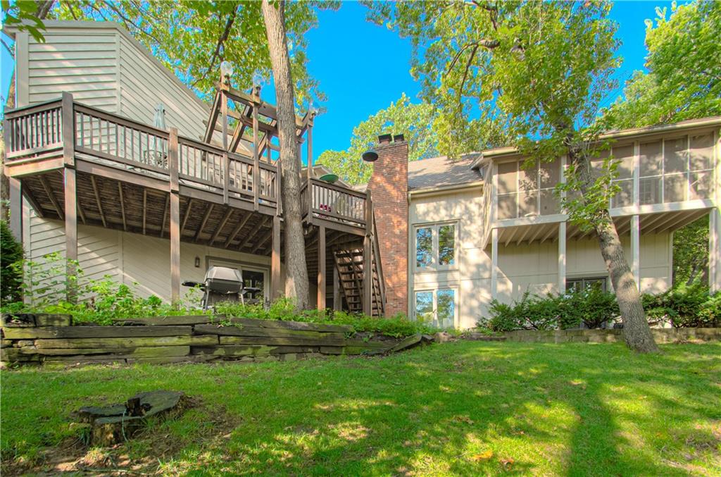 MOTIVATED SELLER! Fabulous One Owner Custom Home on Stunning 1.61 acre PRIVATE TREED lot in Lake Quivira Community. Lifetime Roof!!Lots of Fun Levels to Explore! This beautiful light filled home has Main level Owner's en suite -complete w/ private screened porch, 3 large closets,huge Owners bathroom w/ extra cabinet storage.Main level 2nd bedroom.Large formal living room/music room & Formal dining room w/ soaring ceilings.A few steps down into the Great room,enjoy a beautiful Stone fireplace & floor to ceiling windows.Oversized Kitchen/Breakfast/Hearth room has dramatic Atrium with gorgeous view of Treed property.Powder room off Kitchen hallway & large utility room off garage.Upstairs level features a darling Kids playroom w/ whimsical carpet featuring Hopscotch & other children's games, as well as a catwalk to the 2 large secondary bedrooms & hollywood bath.A half floor off the Great Room, don't miss the "Tavern"-Perfect for Cocktails or a Wine Tasting! A Huge 5th bedroom & full attached bathroom complete this level.The Walkout Lower level features Fabulous Pool/Game room,workout room,Media room w/ brick fireplace, & great designated storage space. RARE 5 Car garage! Addtl storage above detached garage!Private Dock Lakesite #89 for Endless Lake Fun! Lake Quivira is a Stunning private, golf course & lake community with 24/7 gated security & many amenities to enjoy! 18 -hole golf course & a Par 3 golf course! 220 acre private lake for boating, skiing, fishing, kayaking & swimming. Private Sailing club! Additional amenities: extensive nature trails system, equestrian facilities, private full service clubhouse, newer community center w/workout facilities, lap pool, indoor & outdoor tennis & pickleball courts & a variety of exercise classes.One time $40,000 required membership fee & monthly HOA. (visit LakeQuivira.org for more information) MANY clubs to join, kids summer rec programs. indoor & outdoor fun & activities for the entire family & people of all ages.