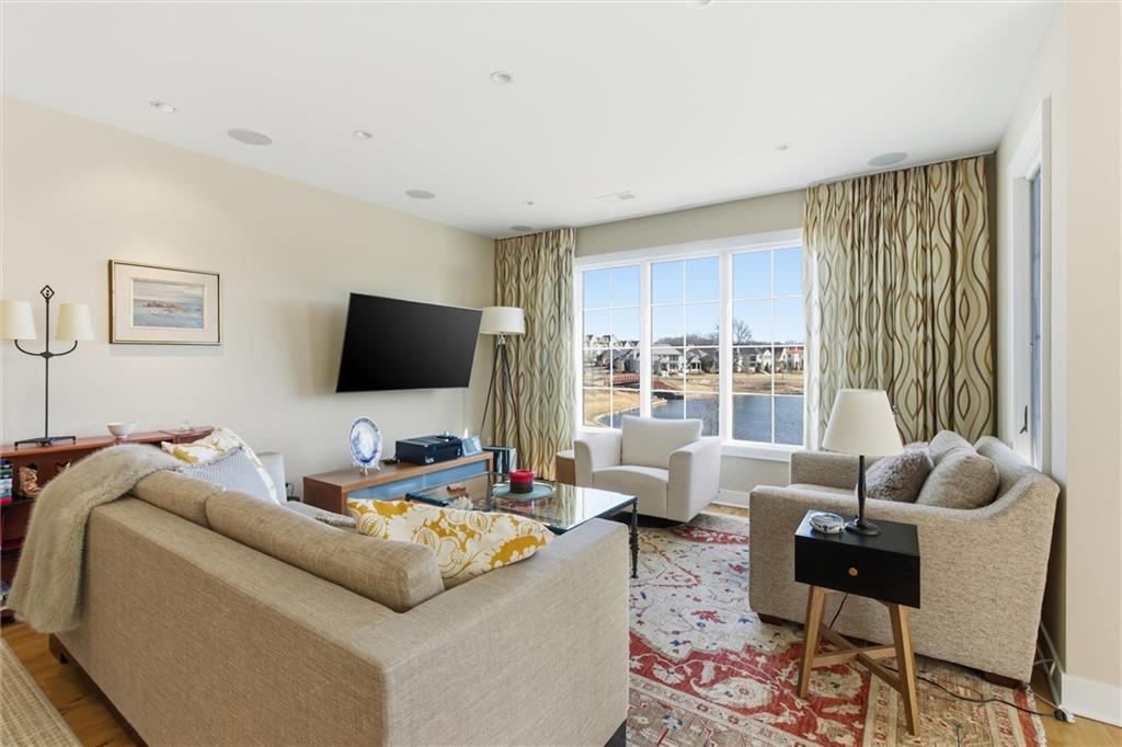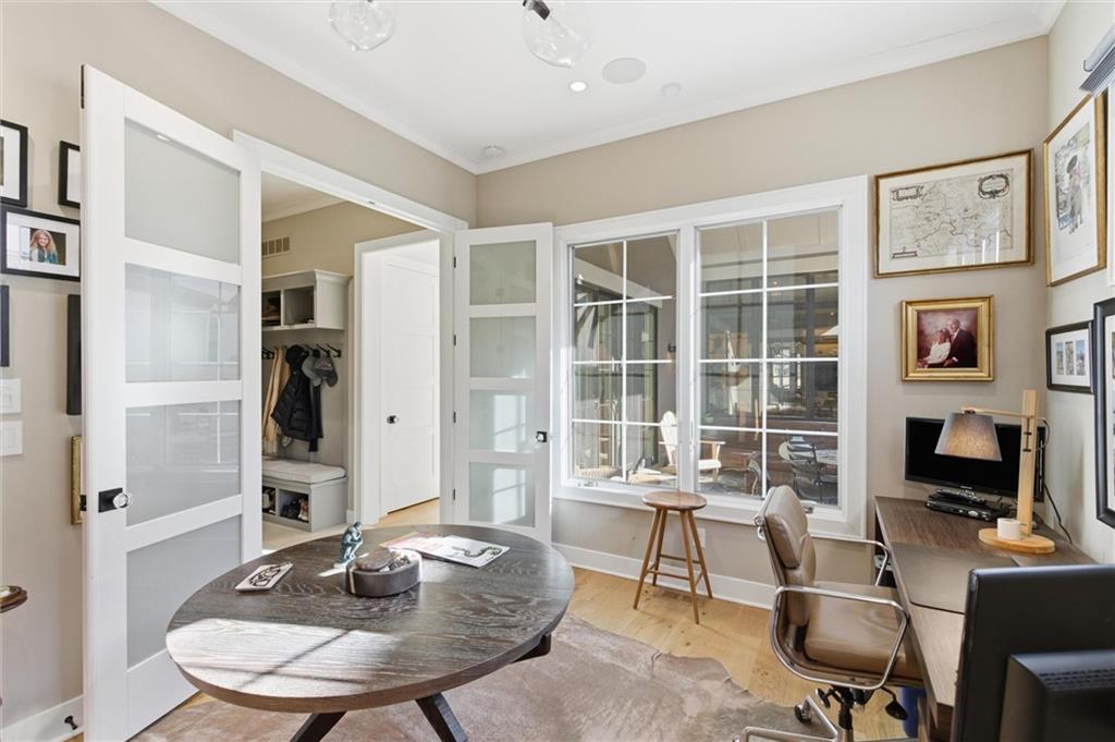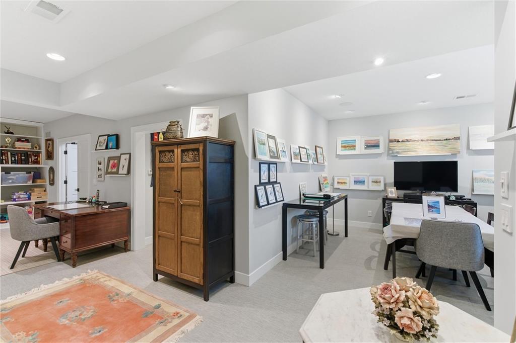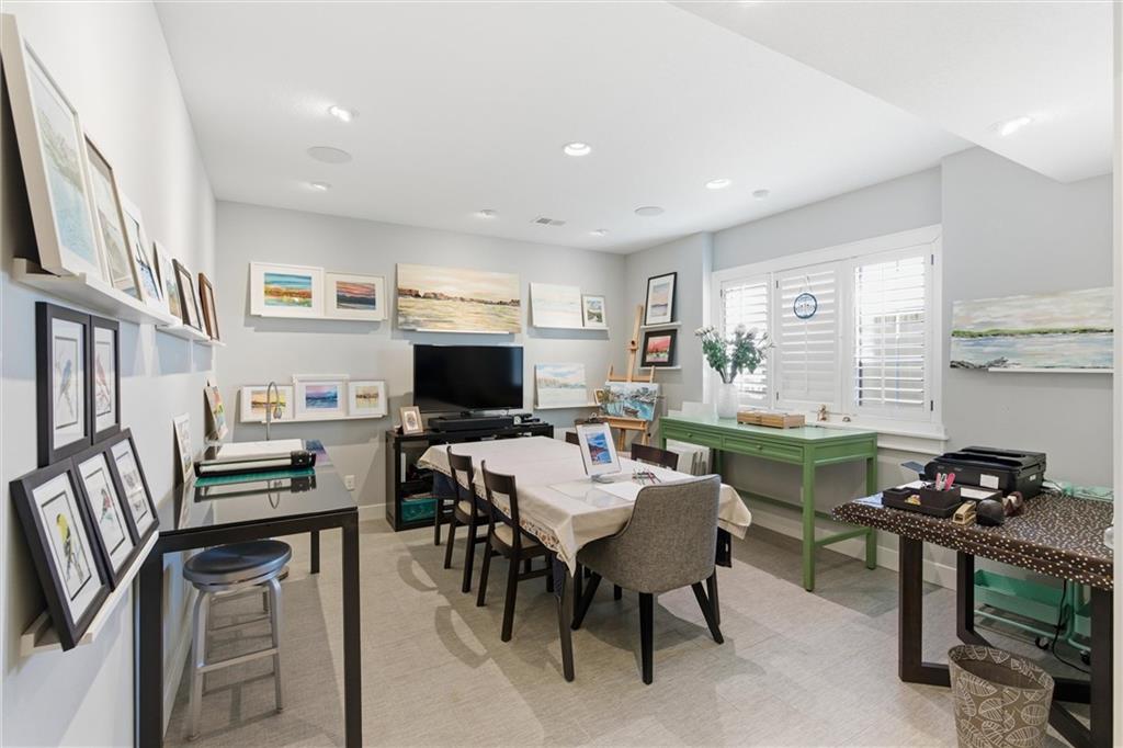 Welcome to this stunning custom, Twin Villa which is one of only a handful of properties perfectly positioned to face the tranquil lakes in highly coveted Meadowbrook Park. Thoughtfully designed with high-end finishes and custom built-ins throughout, this home offers a seamless blend of luxury and livability. The beautiful kitchen is a true showstopper featuring floor to ceiling cabinets, an oversized island with farm sink and quartz counters and stainless steel appliances including a new full sized refrigerator and separate freezer and a built-in beverage refrigerator. The kitchen flows effortlessly into an oversized walk-in pantry complete with a dedicated coffee station and built-in icemaker. The first floor living areas are warmed by antique imported European hardwood floors and enhanced by classic plantation shutters, creating an inviting and refined atmosphere. The second level features an oversized loft overlooking the water which serves as a second living space. The second level also boasts two generously sized bedrooms and a separate playroom ideal for work, play, or a quiet retreat. The lower level impresses with heated floors throughout, a full bath, and a cleverly integrated Murphy Bed. Currently used as an inspiring art studio, this flexible space easily transforms into a private office, guest suite or creative haven. Step through the sliding glass doors from the kitchen to your quiet, private stone patio with privacy wall is an ideal setting for entertaining guests or enjoying a relaxing evening after a long day. With picturesque views, exceptional craftsmanship, and versatile living spaces, this twin villa maximizes the exceptional view of the water and park. Meadowbrook Park is the crown jewel of the city and your opportunity to own a villa with this exceptional view and location is one not to be missed. Enjoy resort style living at it's finest. HOA includes a private resident's pool with outdoor living room area with TV and fireplace.