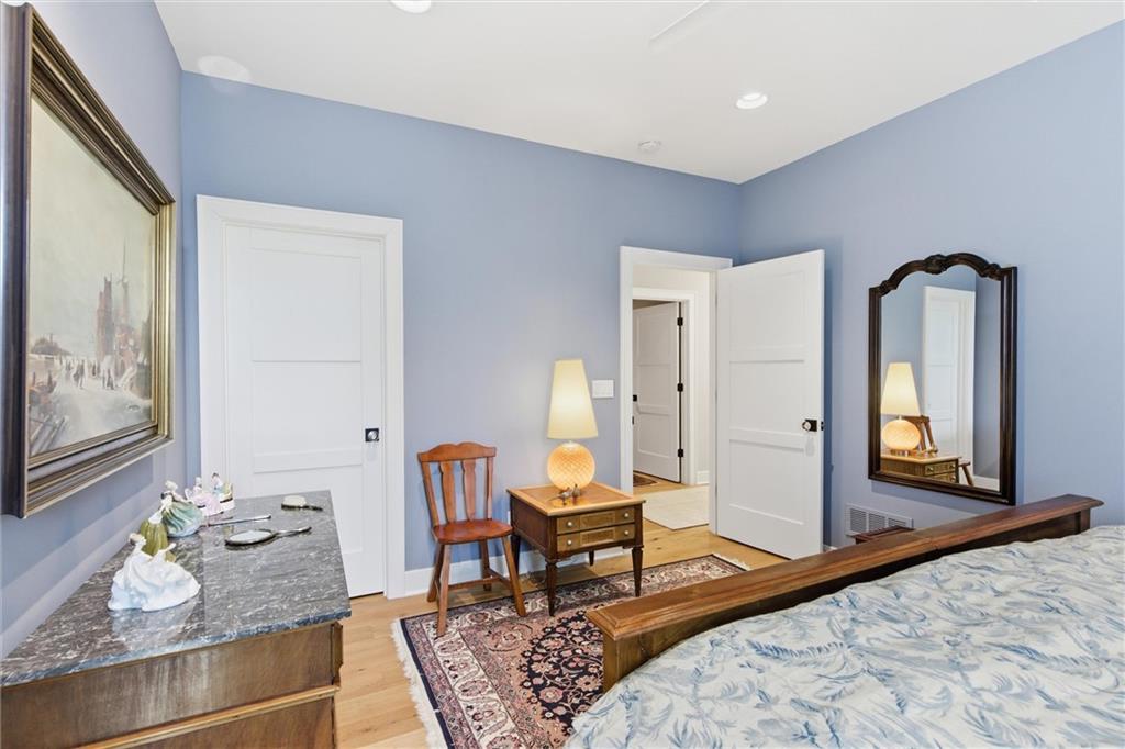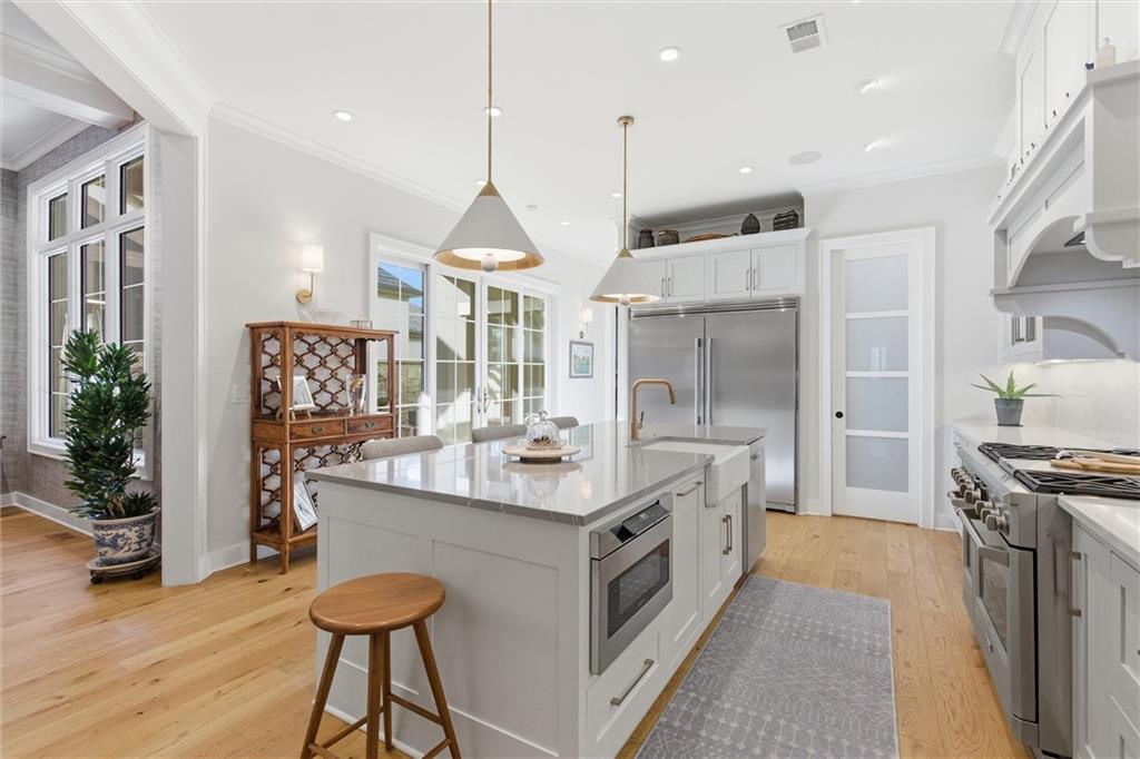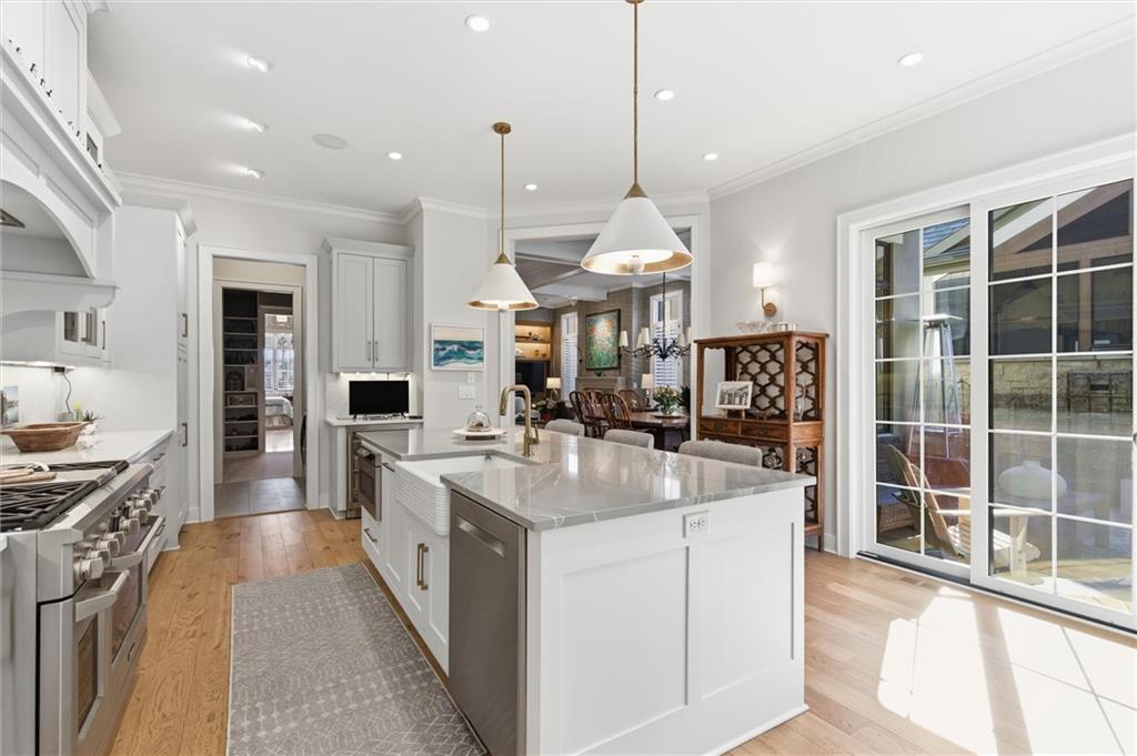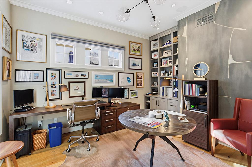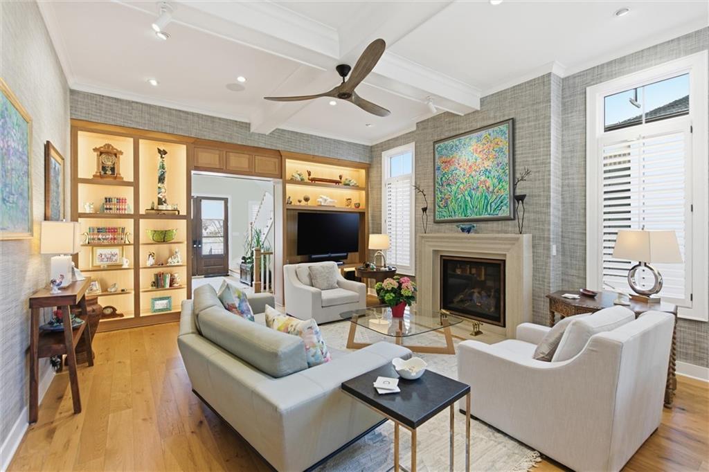 Welcome to this stunning custom, Twin Villa which is one of only a handful of properties perfectly positioned to face the tranquil lakes in highly coveted Meadowbrook Park. Thoughtfully designed with high-end finishes and custom built-ins throughout, this home offers a seamless blend of luxury and livability. The beautiful kitchen is a true showstopper featuring floor to ceiling cabinets, an oversized island with farm sink and quartz counters and stainless steel appliances including a new full sized refrigerator and separate freezer and a built-in beverage refrigerator. The kitchen flows effortlessly into an oversized walk-in pantry complete with a dedicated coffee station and built-in icemaker. The first floor living areas are warmed by antique imported European hardwood floors and enhanced by classic plantation shutters, creating an inviting and refined atmosphere. The second level features an oversized loft overlooking the water which serves as a second living space. The second level also boasts two generously sized bedrooms and a separate playroom ideal for work, play, or a quiet retreat. The lower level impresses with heated floors throughout, a full bath, and a cleverly integrated Murphy Bed. Currently used as an inspiring art studio, this flexible space easily transforms into a private office, guest suite or creative haven. Step through the sliding glass doors from the kitchen to your quiet, private stone patio with privacy wall is an ideal setting for entertaining guests or enjoying a relaxing evening after a long day. With picturesque views, exceptional craftsmanship, and versatile living spaces, this twin villa maximizes the exceptional view of the water and park. Meadowbrook Park is the crown jewel of the city and your opportunity to own a villa with this exceptional view and location is one not to be missed. Enjoy resort style living at it's finest. HOA includes a private resident's pool with outdoor living room area with TV and fireplace.